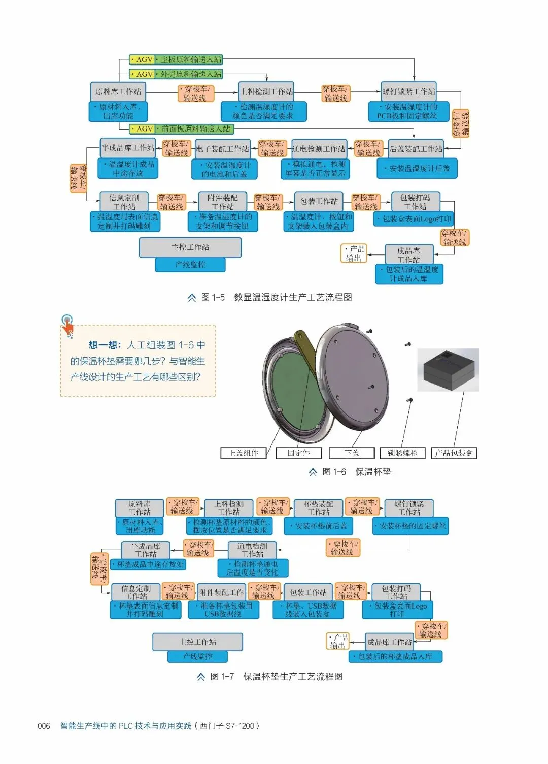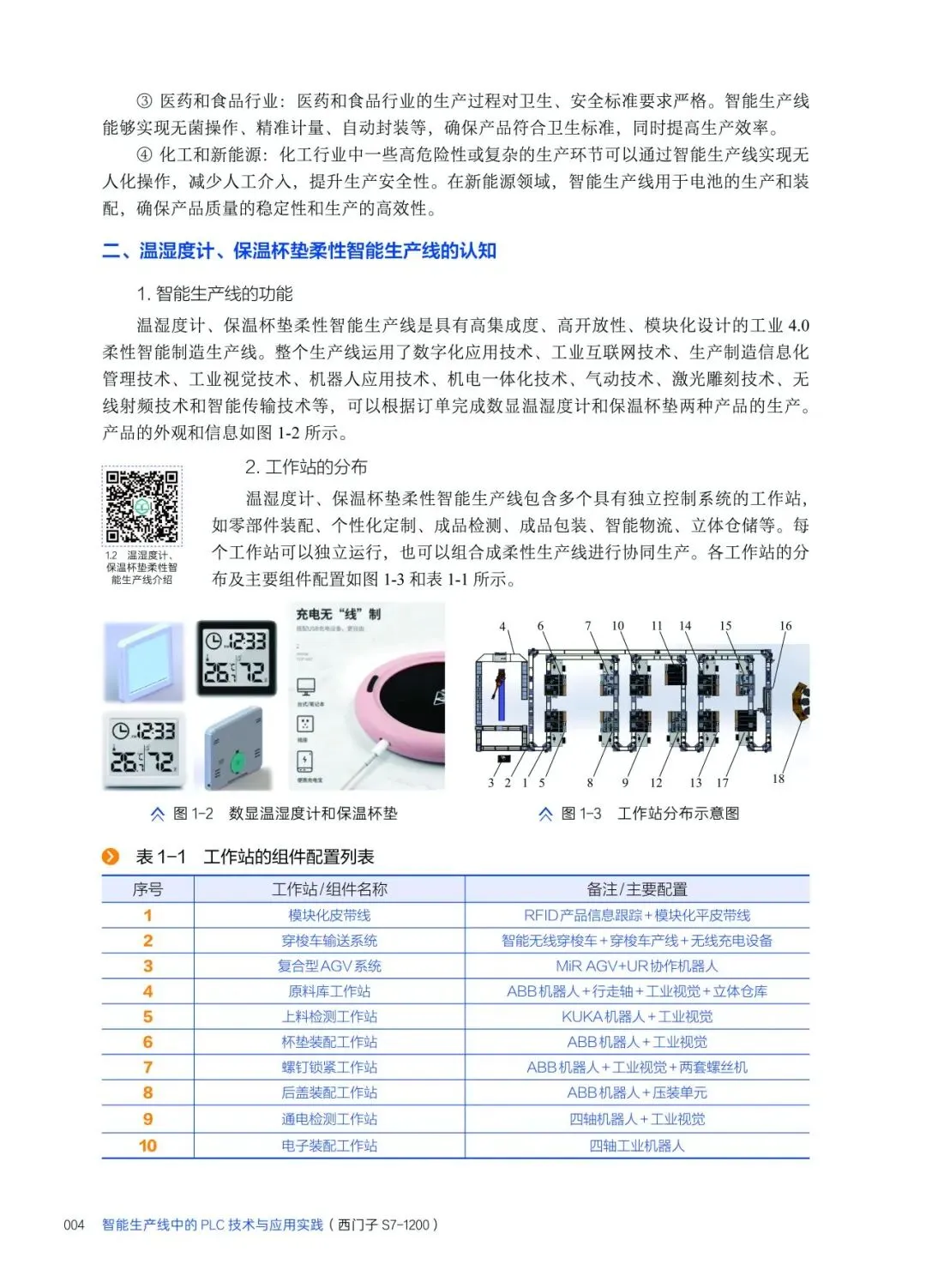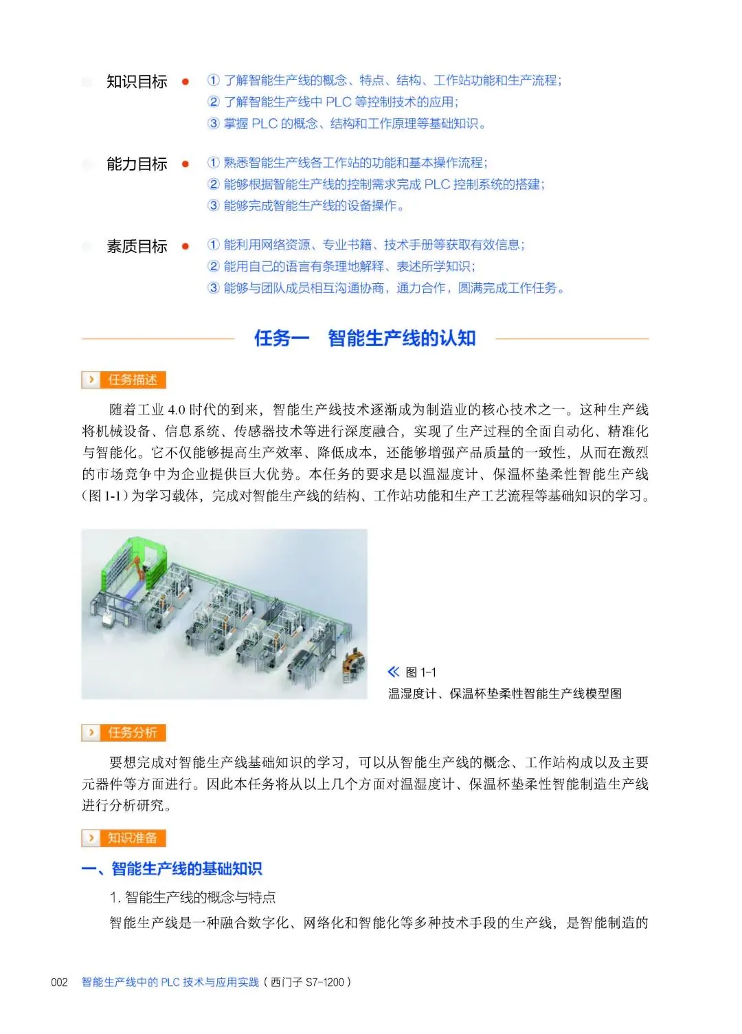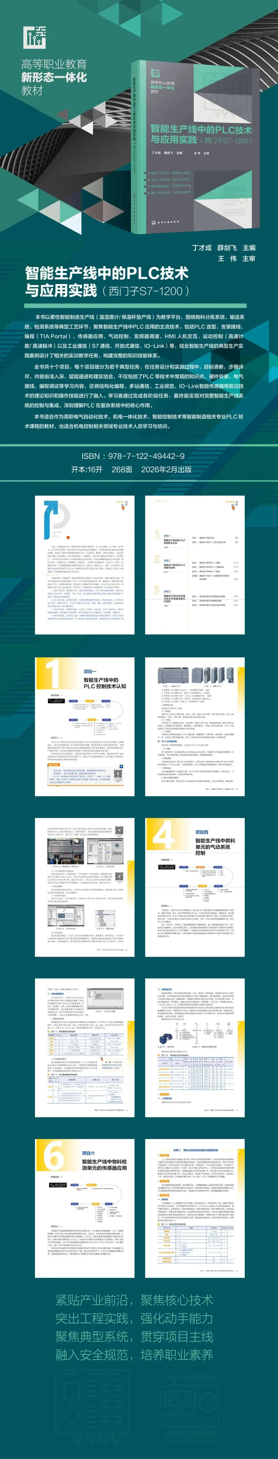 本书以柔性智能制造生产线(温湿度计 / 保温杯垫产线)为教学平台,围绕物料分拣系统、输送系统、检测系统等典型工艺环节,聚焦智能生产线中 PLC 应用的主流技术,包括 PLC 选型、安装接线、编程(TIA Portal)、传感器应用、气动控制、变频器调速、HMI 人机交互、运动控制(高速计数 / 高速脉冲)以及工业通信(S7 通信、开放式通信、IO-Link)等,结合智能生产线的典型生产实践案例设计了相关的实训教学任务,构建完整的知识技能体系。