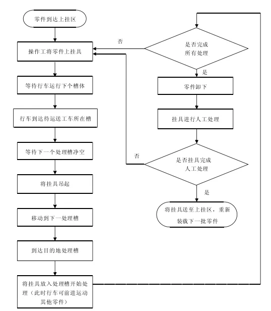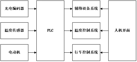 根据本课题的设计要求和电镀的工艺分析,本控制系统以镀锌为例进行设计。电镀生产线控制系统以PLC为中央处理器,上位机采用先进的触摸屏在线监控。本控制系统分为镀锌温控、上位机监控、行车控制和辅助设备控制四个子系统。监控系统可通过人机界面控制其他三个系统。电镀生产线控制系统的整体结构框图如图2.2所示。