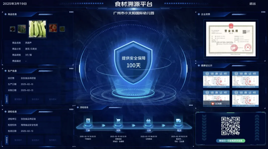 食品安全全链溯源: 每一批次食材从田头到餐桌,都有完整的数字化“身份证”,满足教育局和食药监的合规要求。
