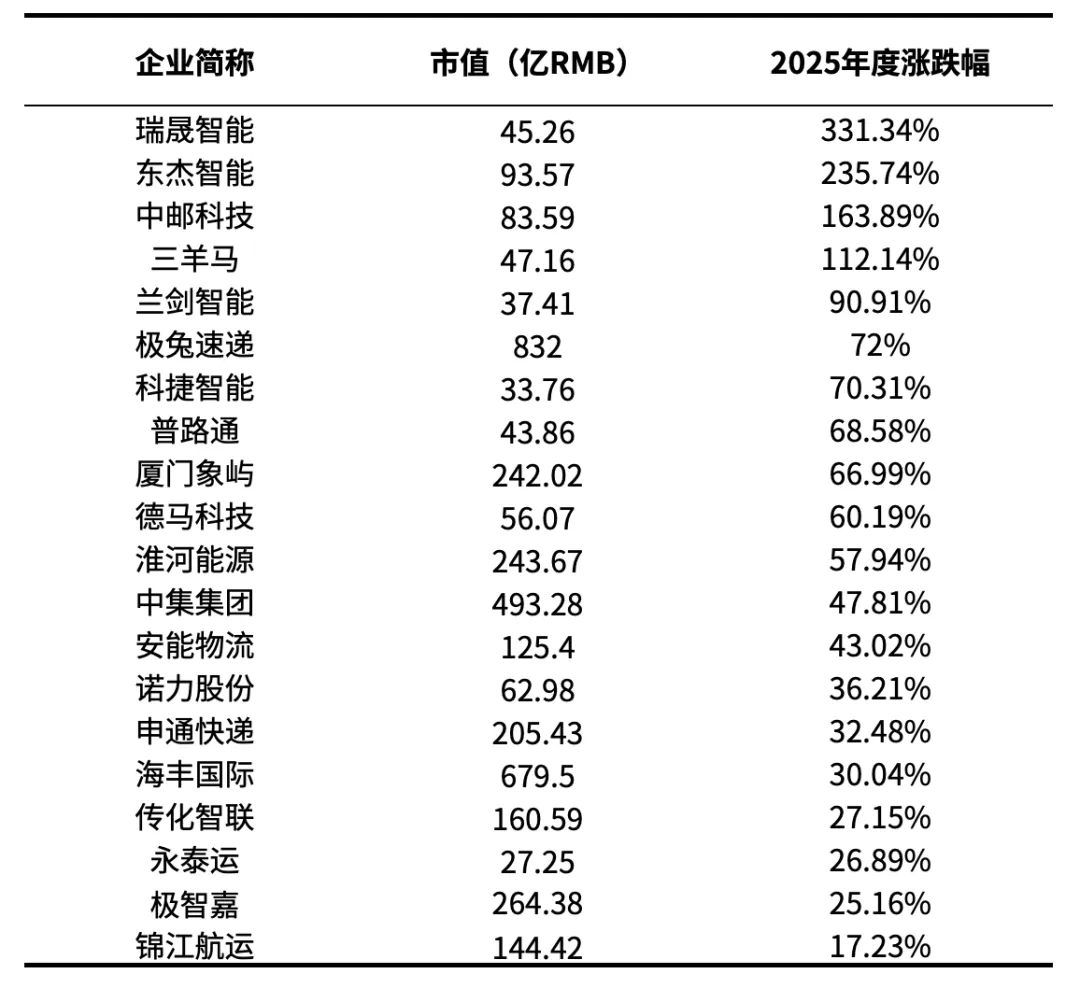2024年,物流行业中年度涨幅超过30%的企业有12家,到了2025年这一数字已上升至16家。