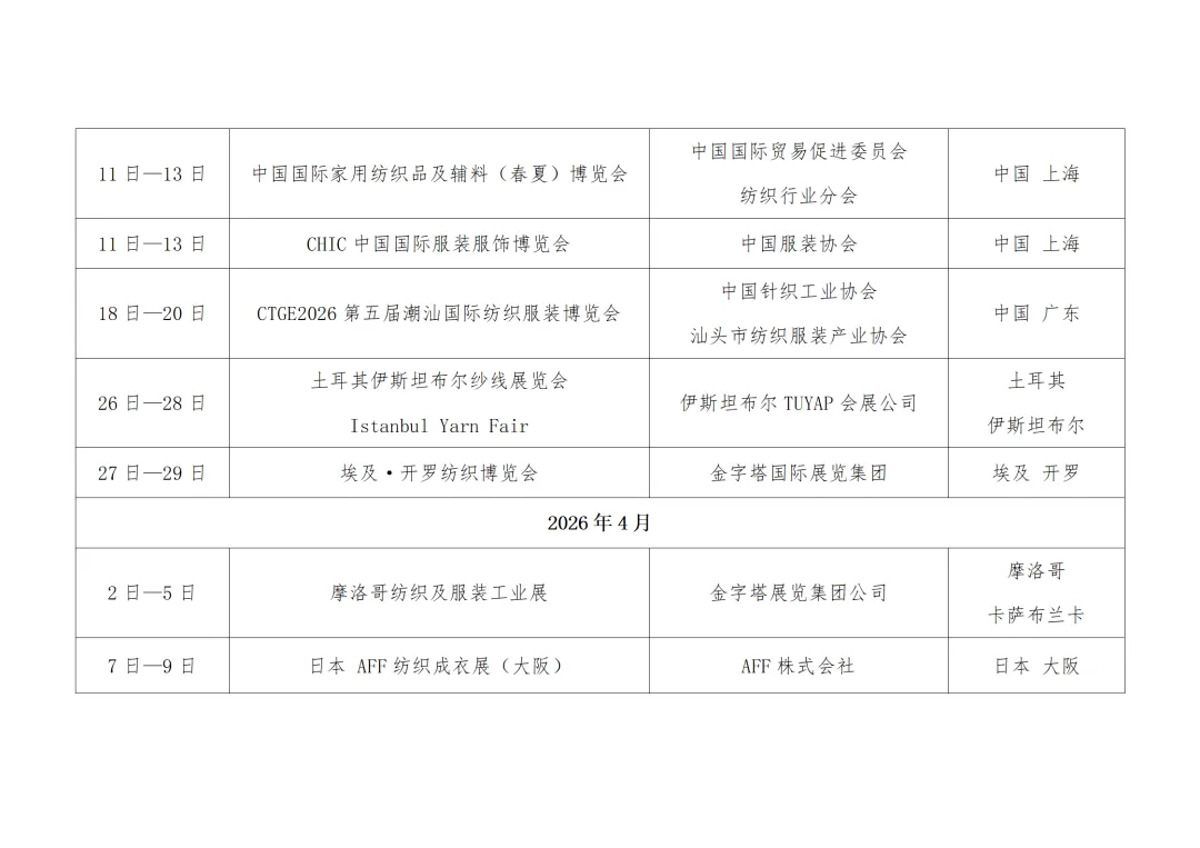 展会 | 2026年全球纺织服装/时尚行业展会日程表
