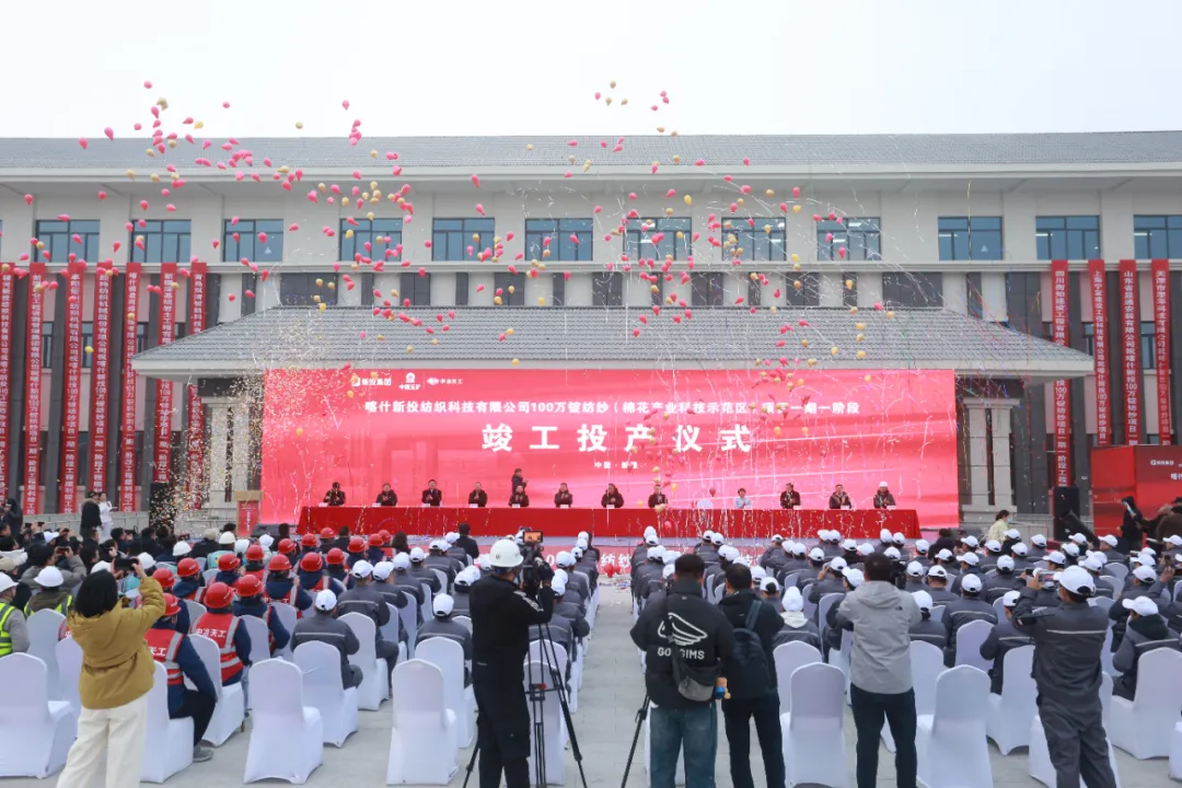 2025年12月29日上午,新疆喀什新投纺织科技有限公司(以下简称“喀什新投”)100万锭纺纱项目一期一阶段10万锭竣工投产仪式隆重举行。该投产项目是新疆投资发展(集团)有限责任公司在全疆布局的6个大型棉纺项目中首个开工、首个投产的标杆工程。