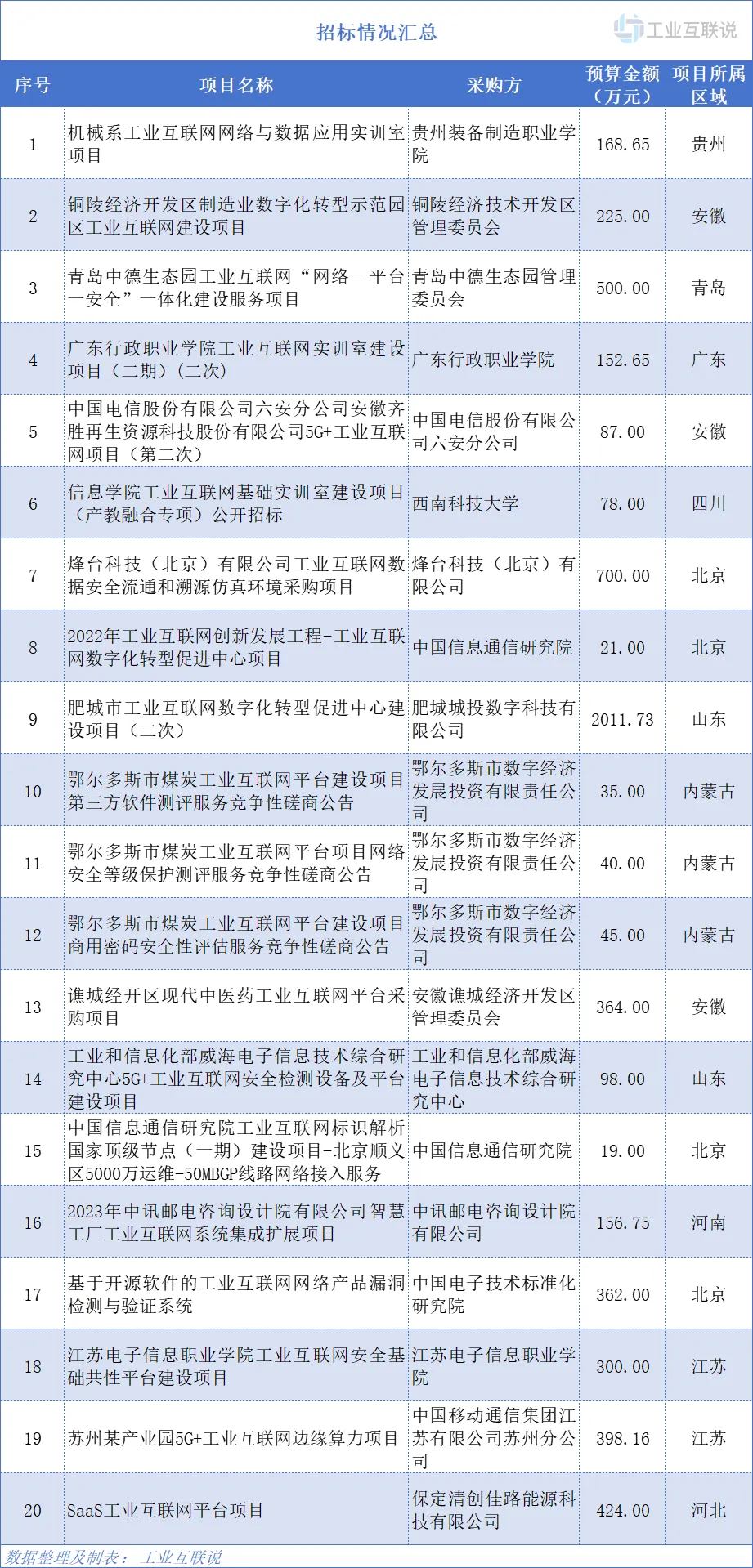 预算超6千万!工业互联网项目招标情况汇总