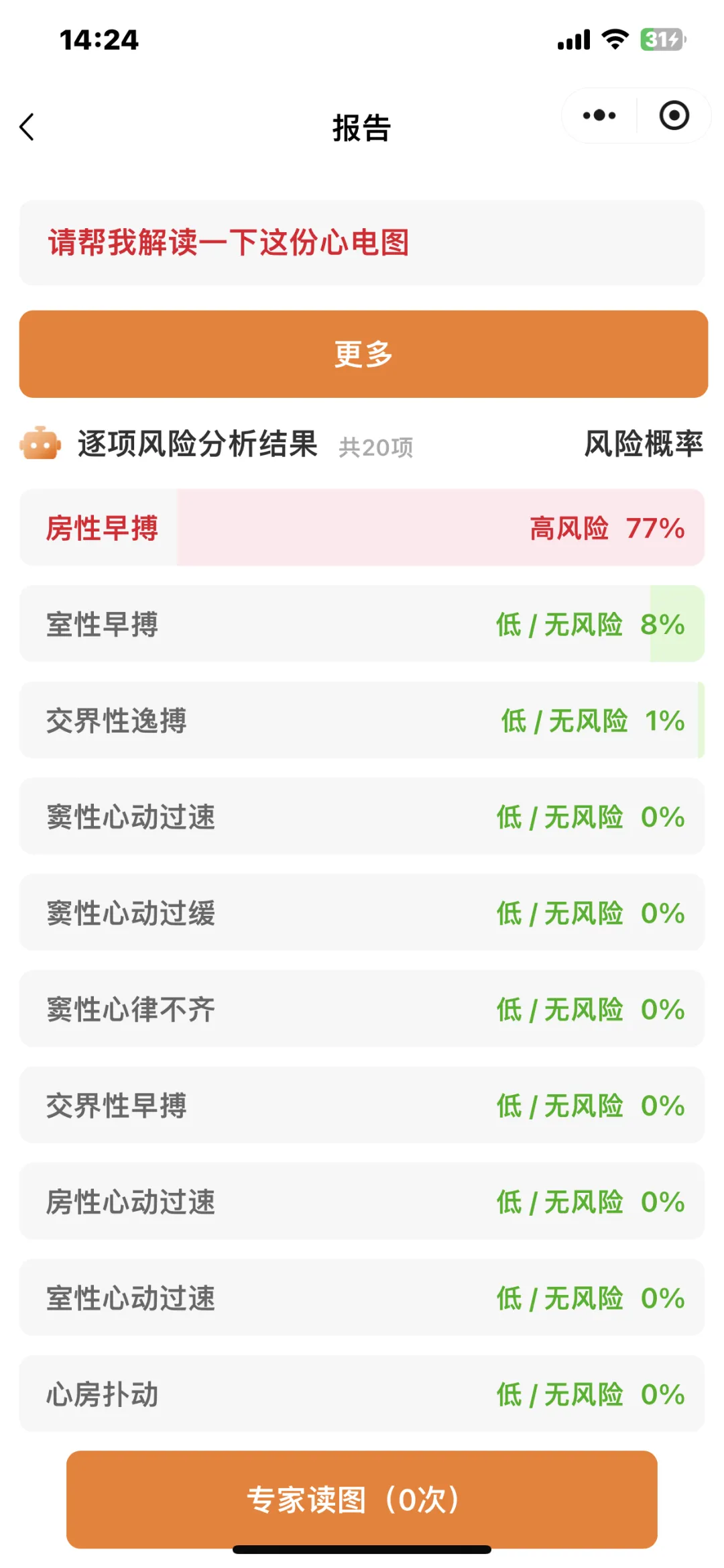 在这48位看起来精神矍铄的长辈中,通过科技设备的实时记录,我们竟然发现了3例明显的生理节律异常(包括心率过快及早搏现象),按照参与人数计算,问题检出率为6.25%。