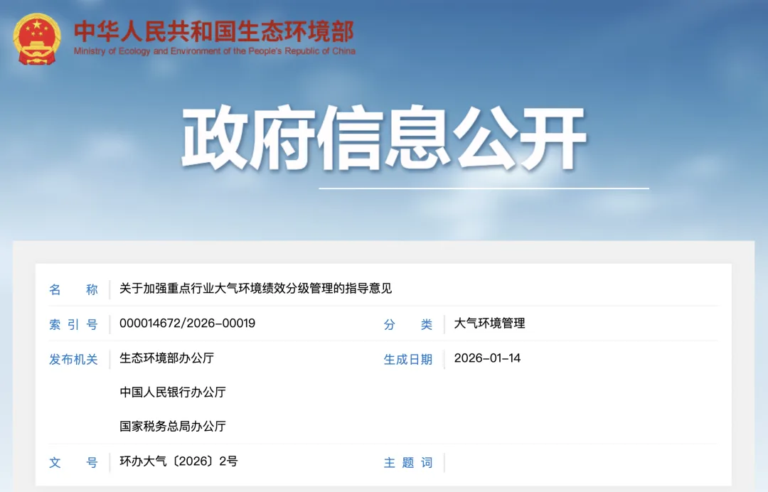 《指导意见》要求生态环境部建设全国统一的绩效分级工作平台,集成企业申报、审核评定、评级降级结果公示公开、绩效等级查询等功能,面向企业、各级生态环境部门和社会公众开放。