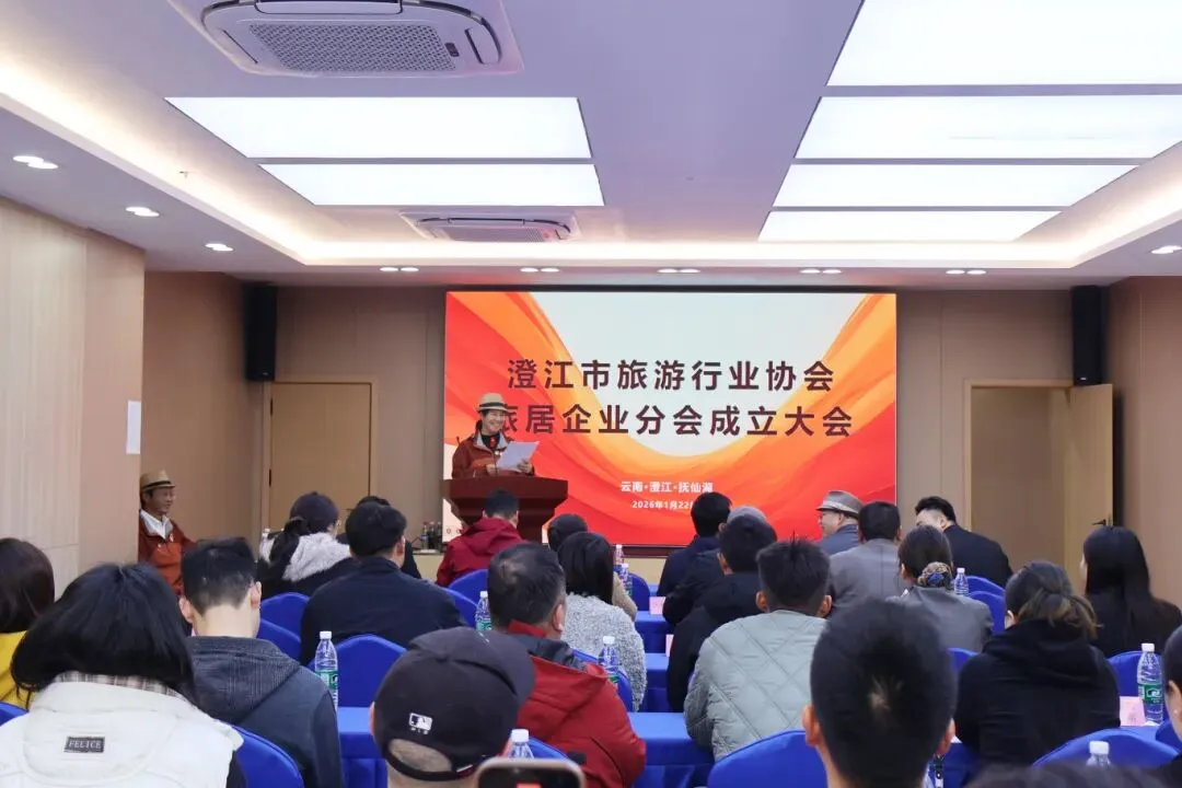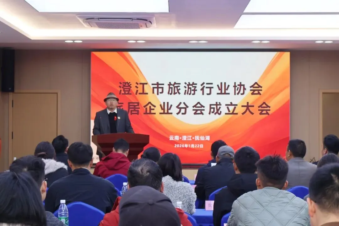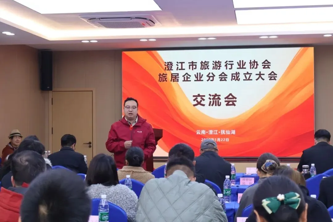 为进一步整合澄江旅居产业资源,规范行业发展秩序,推动文旅产业高质量发展,1月22日,澄江市旅游行业协会旅居企业分会成立大会在抚仙湖广龙小镇顺利召开。澄江市文化和旅游局相关领导、旅游行业协会代表及全市旅居行业企业负责人参加此次会议。