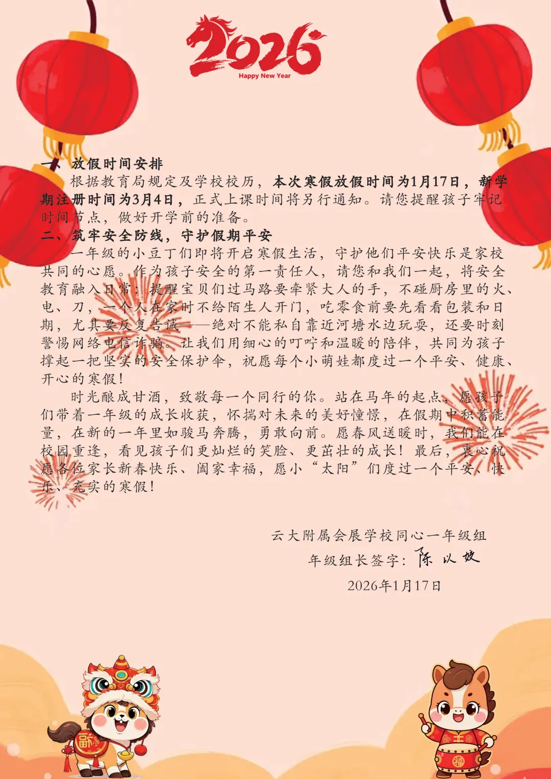 《云大附属会展学校2025-2026学年一年级寒假实践手册》