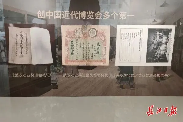 展厅内不仅通过图文的形式展示了部分文物与史迹资料,还专门设置了百年老字号专柜,其中常胜川茶叶曾获劝业奖进会一等奖,当年的汉汾酒(后更名为“黄鹤楼酒”)、老万城等品牌,都是彼时会展中的代表性本土好物,生动印证了会展对民族产业的赋能作用。