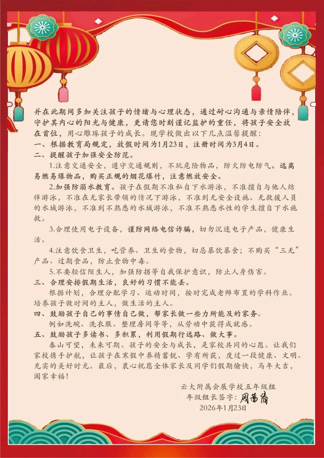 《云大附属会展学校2025-2026学年五年级寒假实践手册》