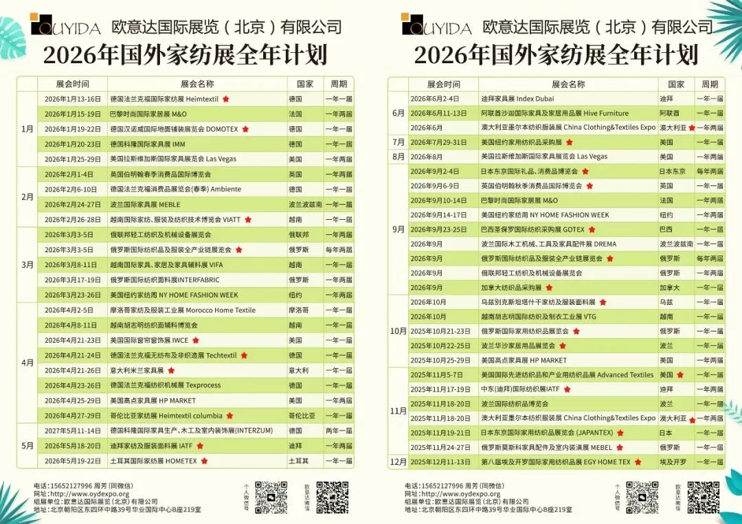 欧意达经过二十余年的磨砺,厚积薄发,率先在家用纺织品、服装及面料、家具装饰面料、门窗遮阳及建材相关行业确立了不可撼动的市场地位。始于会展,专注会展。我们愿以丰富的经验为您的产品进入国际市场架起腾飞的桥梁,帮助您结识新的贸易伙伴,不断开拓新的海外市场,成为您迈入国际市场的最佳捷径。