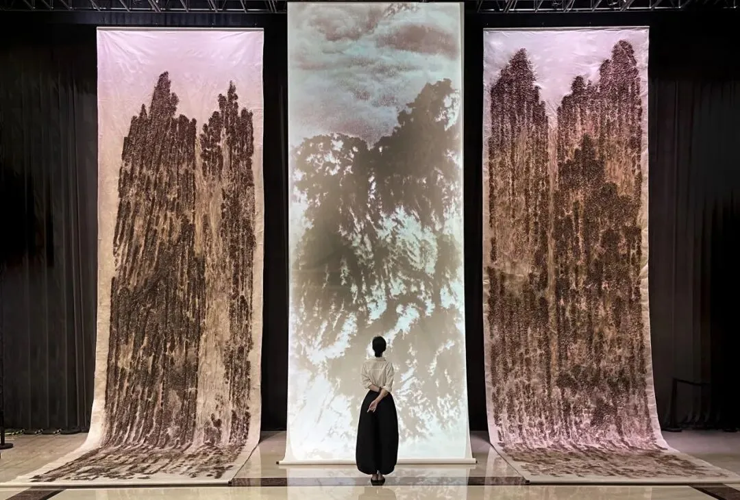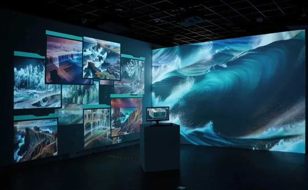 展品涵盖装置、数字沉浸装置等多种媒介形态,既有从传统山水精神中蜕变而出的数字意境,也有直面人工智能技术的思辨。围绕“传统艺术语言的当代转化”与“文明视觉表征的智能化演绎”等命题,参展作品展开多维度的实验与深度挖掘。艺术家们借助科技手段,在建构诗性艺术语言的同时,积极探索中华文明母题的当代表达路径。