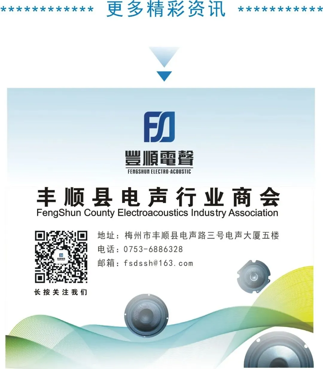 未来,中音协会将积极组织广大会员企业与丰顺县政府相关部门、丰顺电声商会开展全方位、多层次、深层次的交流对接,广泛整合行业优质资源、汇聚发展合力,全力助力丰顺电声产业进一步做大做强、推动高质量发展再登新台阶。