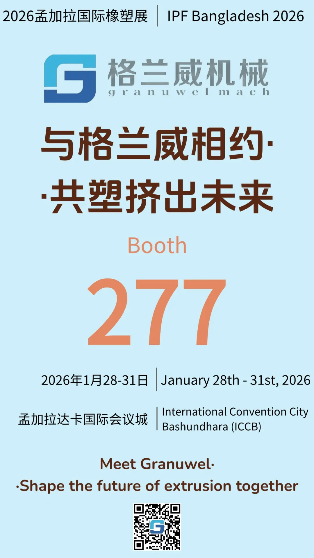 2026年1月28日至31日,格兰威机械将携创新技术与专业解决方案,亮相孟加拉达卡国际会议城(ICCB),参与行业盛会——第18届国际塑料橡胶、包装、印刷工业展(IPF Bangladesh 2026)!