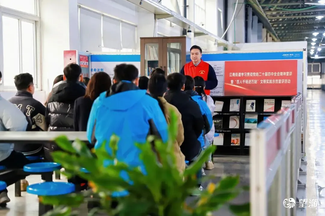 1月22日下午,临海市江南街道学习贯彻党的二十届四中全会精神宣讲暨“百人千场进万站”文明实践示范宣讲活动走进拓卡奔马机电科技有限公司。本次活动将理论宣讲课堂搬进企业生产一线,通过深入浅出的政策解读与接地气的互动交流,推动党的创新理论在企业落地生根,凝聚起高质量发展的精神动力。