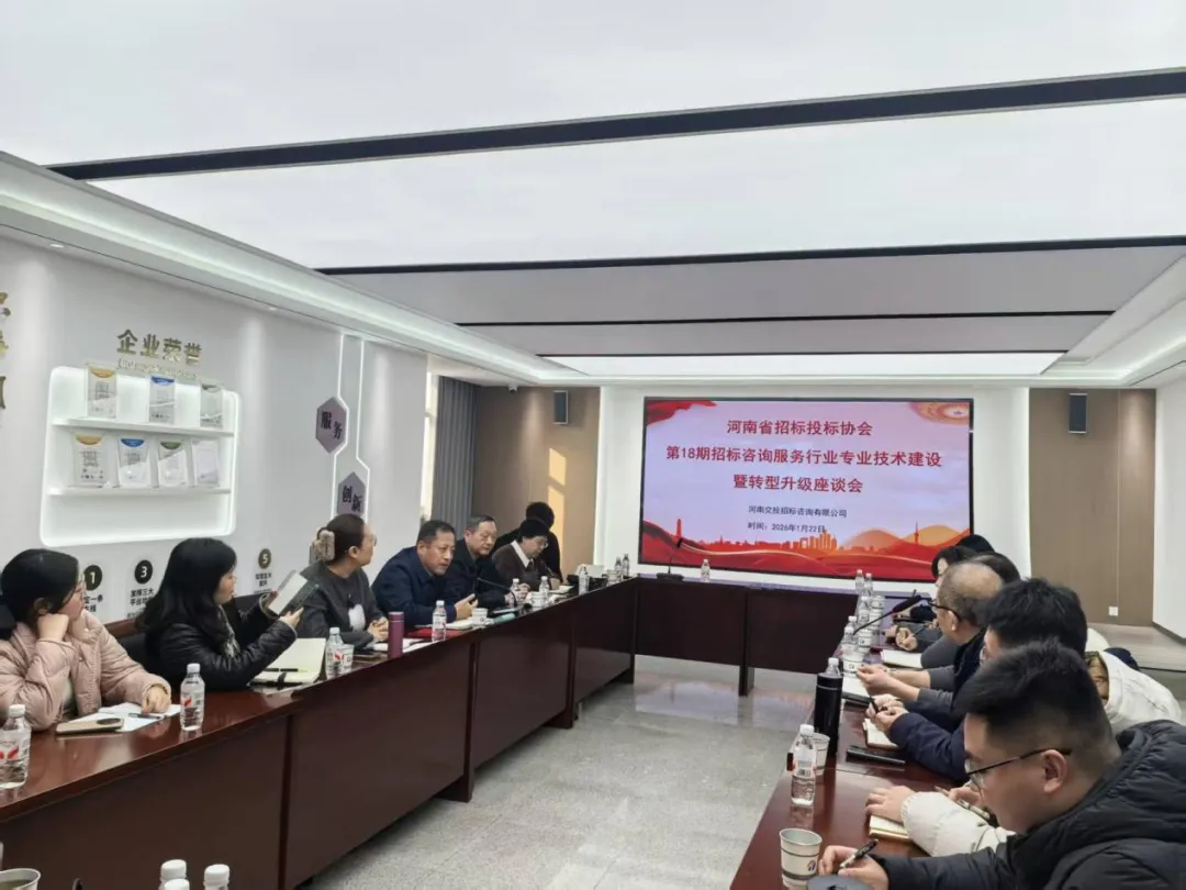 1月22日下午,河南省招标投标协会第18期招标咨询服务行业专业技术建设暨转型升级座谈会在招标公司顺利召开。招标公司领导班子成员、协会常务副会长兼秘书长孙孟玉以及协会会员单位代表参加会议。