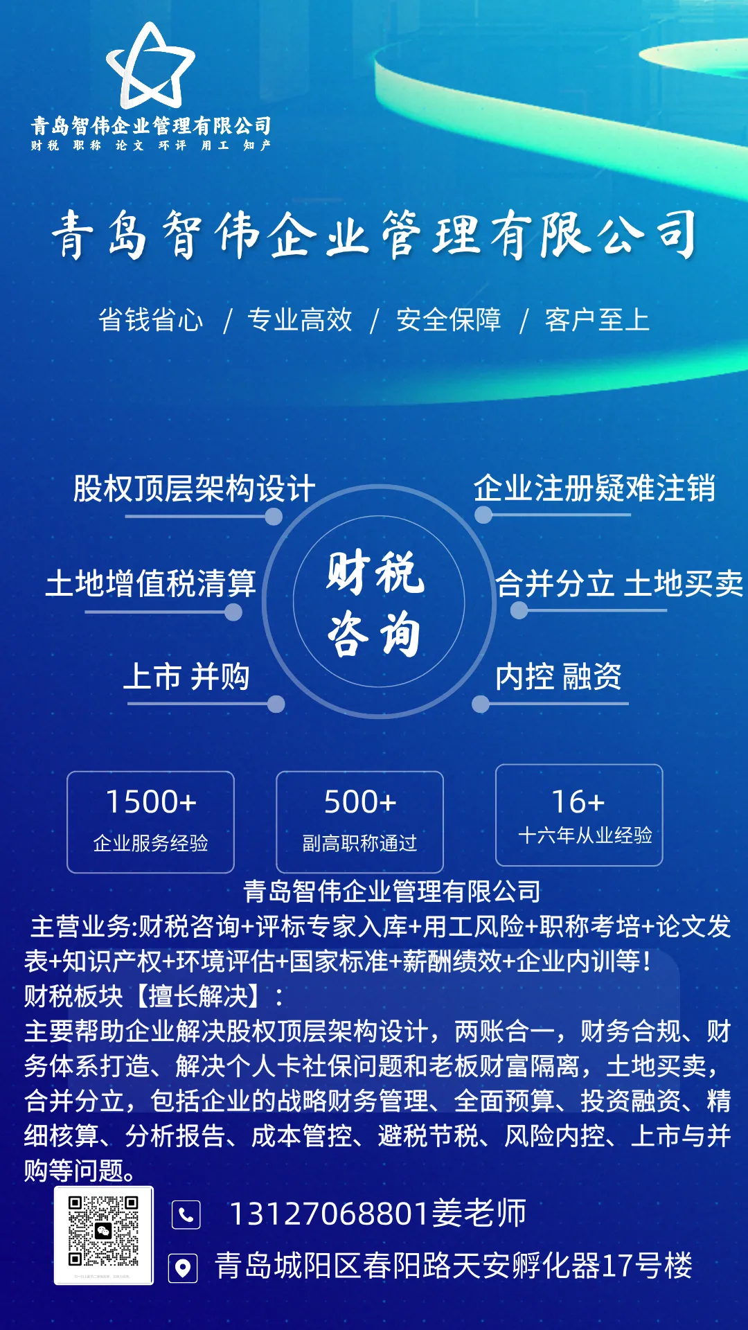 地 址:青岛城阳区春阳路天安孵化器17号楼