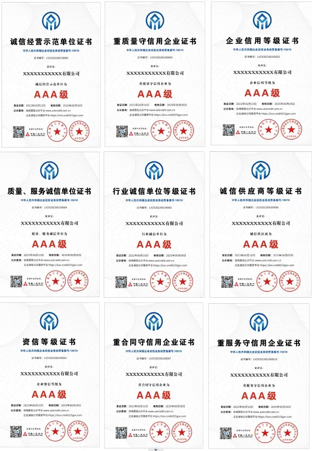 办理“AAA信用等级证书,十证一牌”(招投标加分)