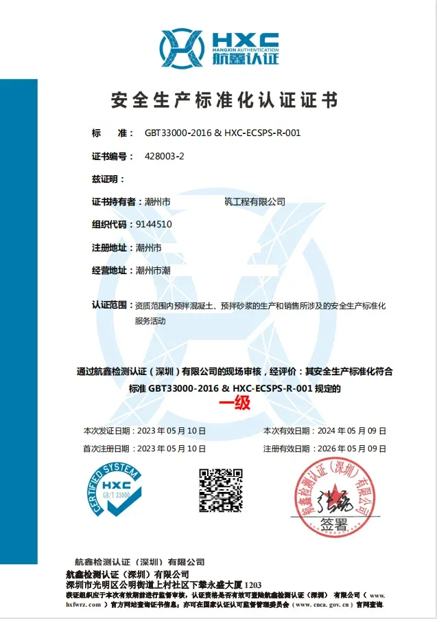 安全生产标准化认证证书