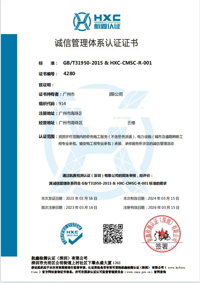 企业诚信管理体系证书