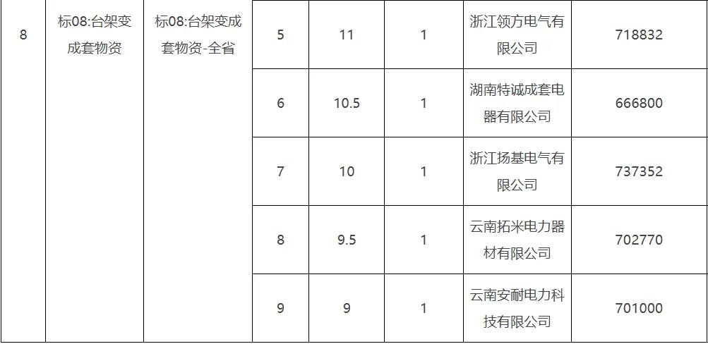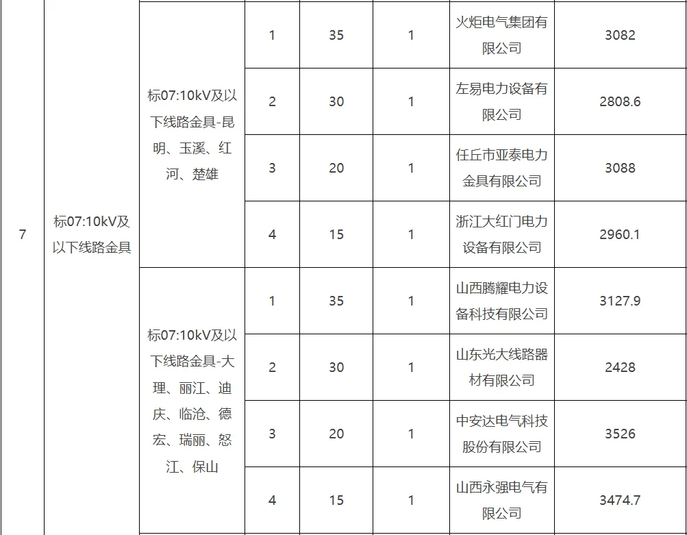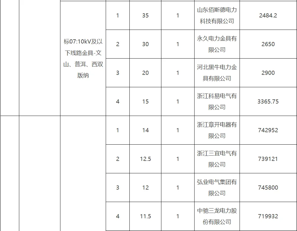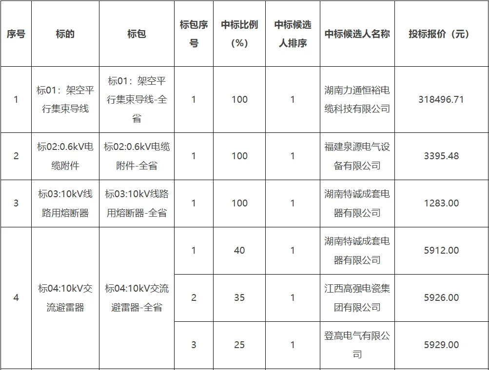 云南电网有限责任公司2025-2026年第18批货物类整合框架采购(公开招标)中标候选人公示