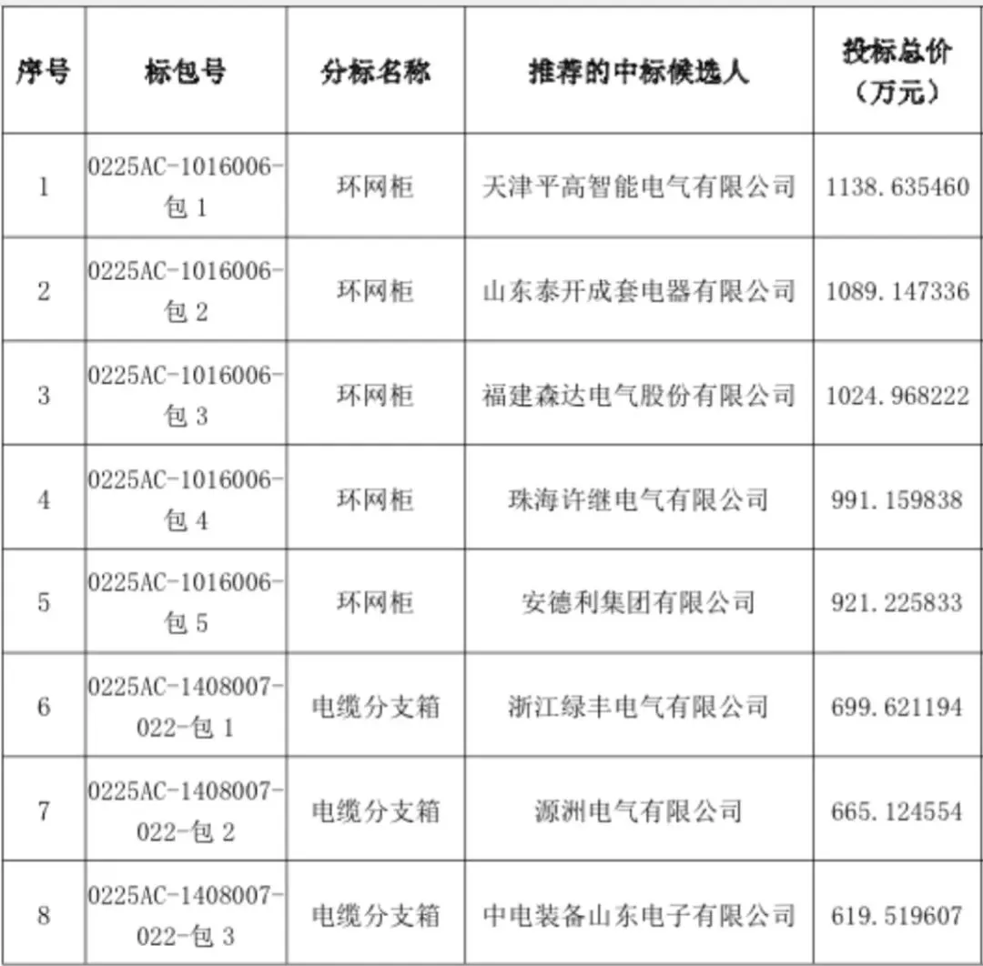 国网北京市电力公司2025年第三次配网物资协议库存公开招标采购(招标编号:0225AC)评标工作已经结束。依据《中华人民共和国招标投标法实施条例》、《招标公告和公示信息发布管理办法》对中标候选人公示的规定,现将评标委员会推荐的中标候选人予以公示,公示期3日。投标人或者其他利害关系人若对评标结果有异议的,请在中标候选人公示期间以书面形式(邮件)提出。