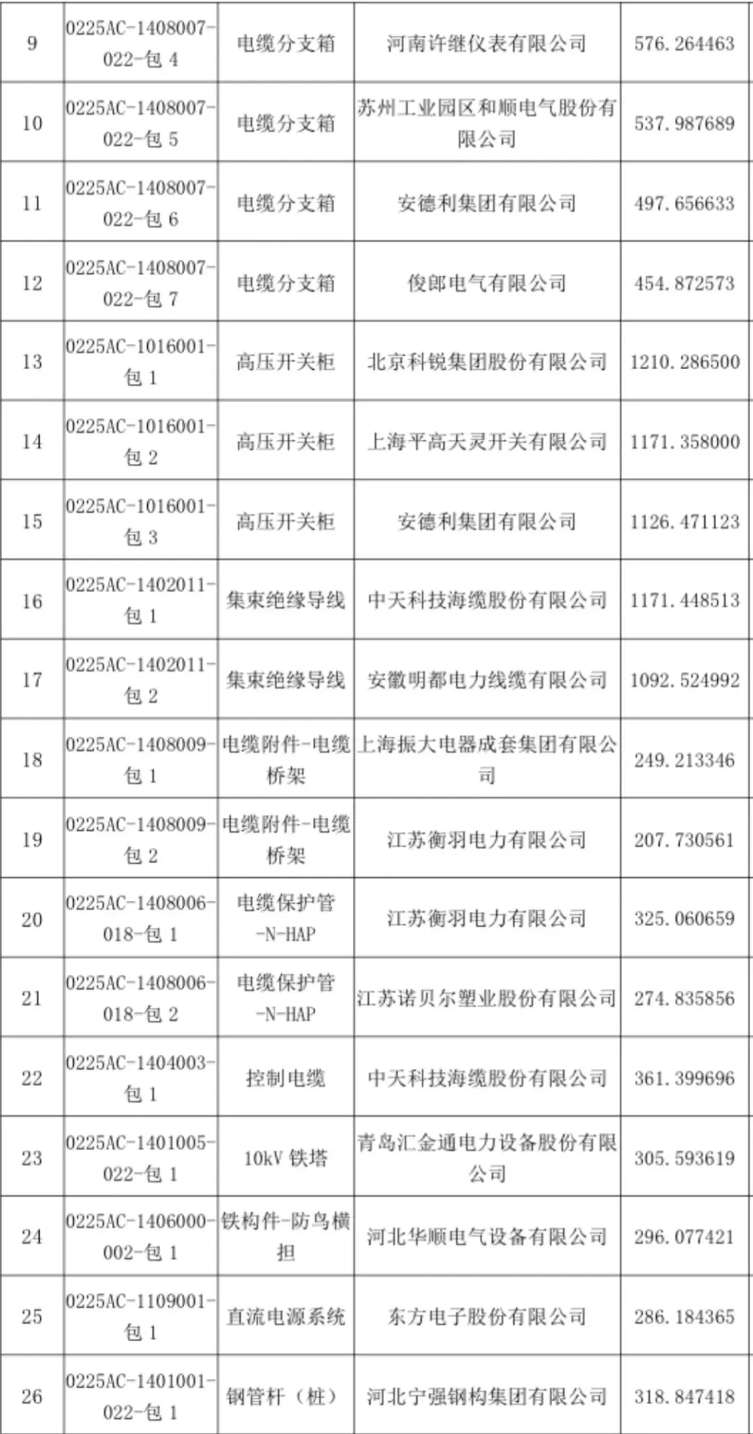 国网北京市电力公司2025年第三次配网物资协议库存公开招标采购推荐的中标候选人公示