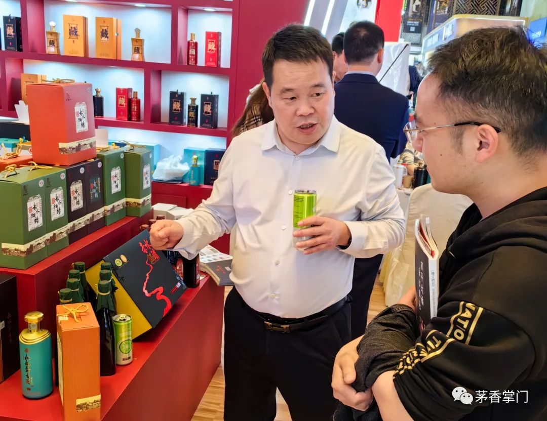 世外桃源展厅,进门看见仁怀酱香酒董事长炯总的背影。作为晚辈,得上前拜会。炯总询问了近况,指点了几招江湖要诀,并号召我们仁怀人,要把贵州、仁怀的好产品,满足人民生活需求的名优产品,推向全国。