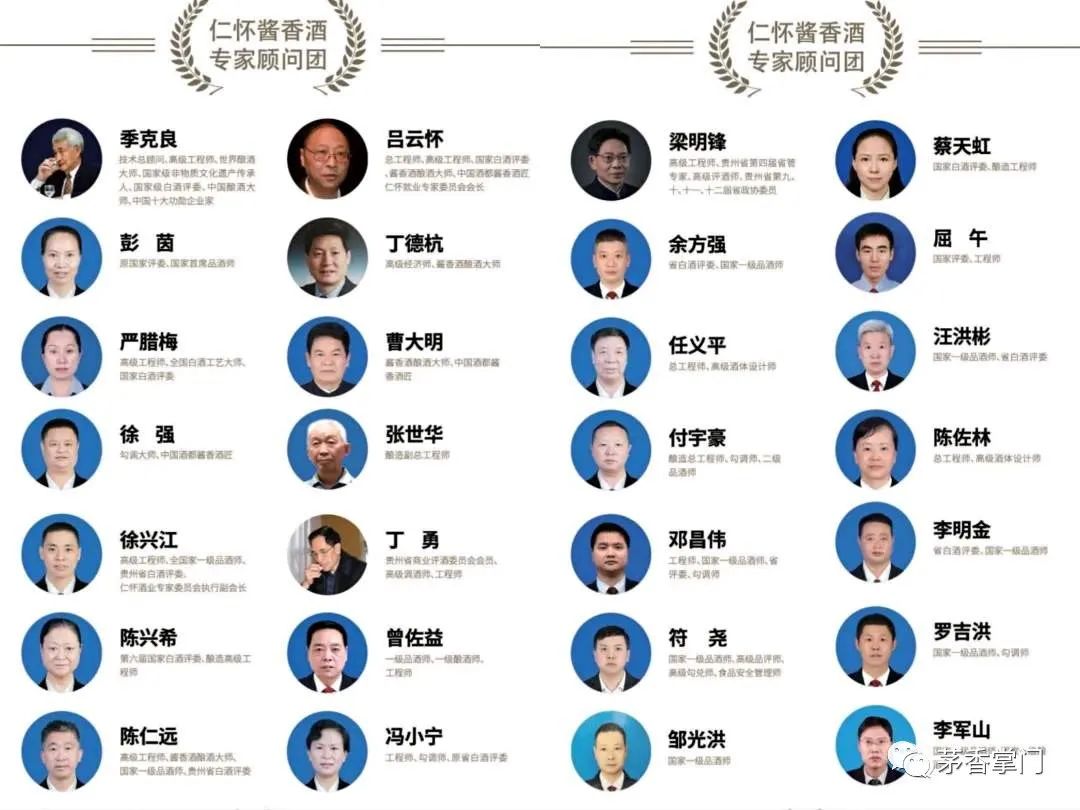 仁怀酱酒集团的仁怀酱香酒,是酱酒标杆性产品。它由仁怀市政府全资打造,由季克良题字,其酒体专家库成员各有神通,他们是季克良、吕怀仁、彭茵、徐兴江、冯小宁、徐强、丁勇、陈仁远、陈兴希、龙则河、付宇豪、梁明锋、余方强、汪洪彬、李明金等。
