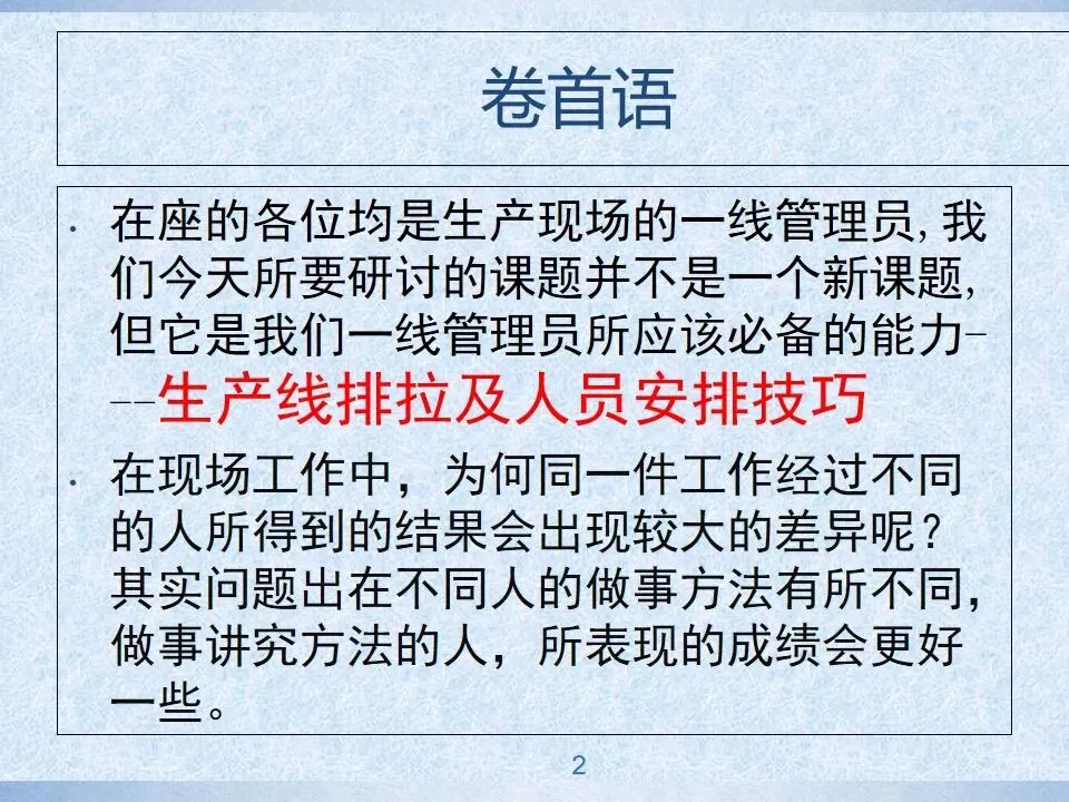 生产线排拉与人员安排是精益制造中实现高效、均衡生产的关键环节。其核心在于以节拍时间为基准,实现工序平衡与人力优化,确保生产流程顺畅、避免瓶颈与等待。
