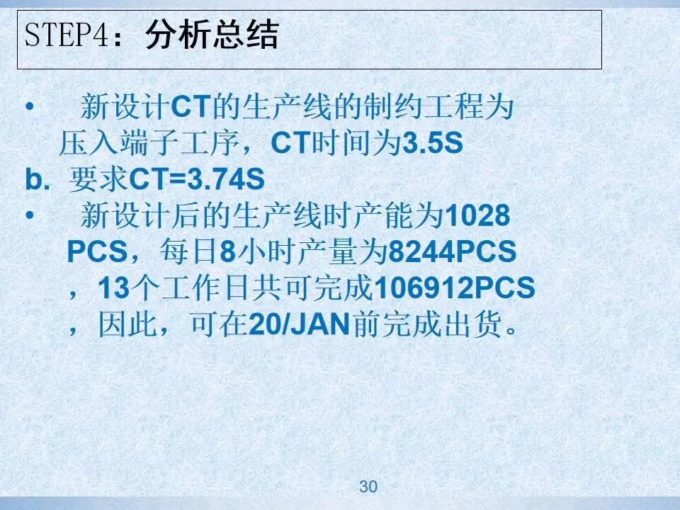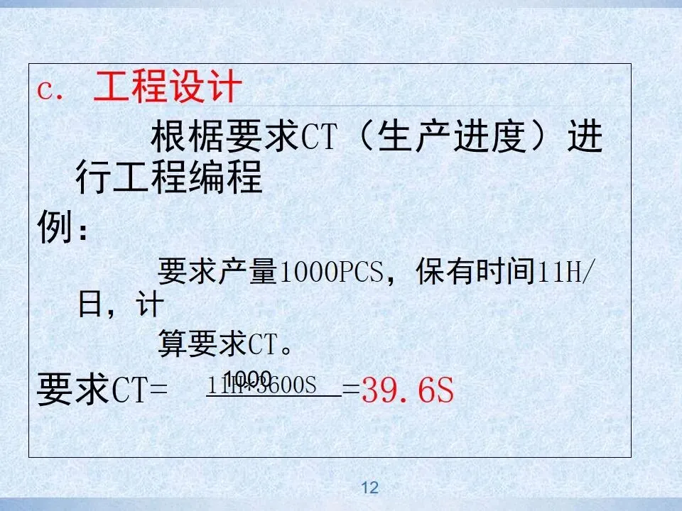 节拍时间驱动:根据客户需求与可用时间确定节拍,以此作为生产线设计与调整的依据。