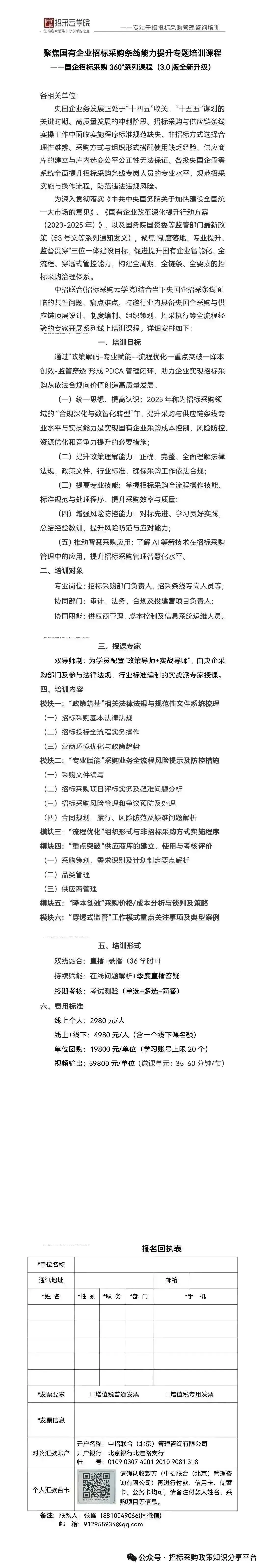 中招联合(招标采购云学院)结合当下央国企招采条线面临的共性问题、痛点难点,特邀行业内具备央国企采购与供应链顶层设计、制度编制、组织策划、招采执行等全流程经验的专家开展系列线上培训课程。详细安排如下: