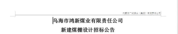 根据《中华人民共和国招标投标法》以及相关法律法规,遵循公开、公平、公正和诚实信用的原则,内蒙古广纳煤业(集团)有限责任公司招标管理部就乌海市鸿新煤业有限责任公司—新建煤棚设计 展开国内公开招标,诚邀业内企业单位前来参加投标。
