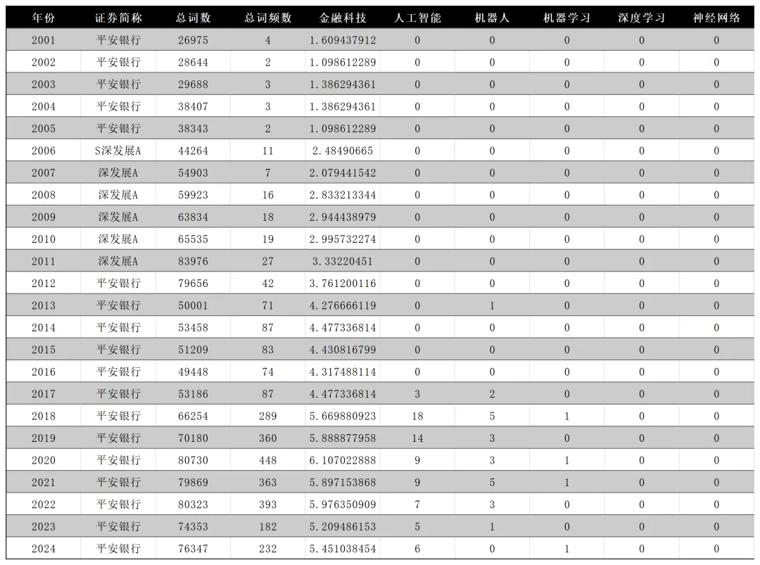 参考黄磊(2023)等,从上市公司年报中提取金融科技关键词词频数,对所得结果做对数化处理,得到各年度各商业银行的金融科技发展水平。