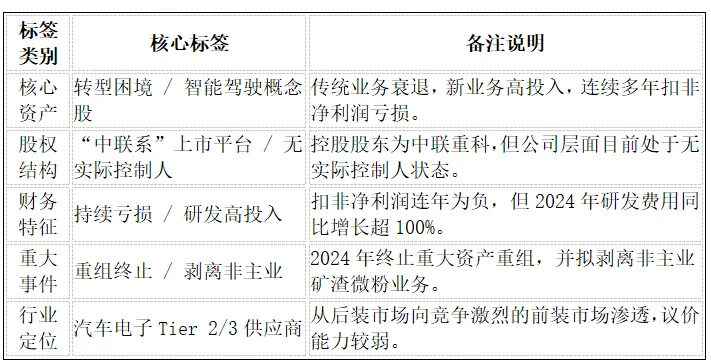 路畅科技的画像复杂而充满矛盾,其核心标签反映了公司所处的困境与机遇并存的特殊阶段。