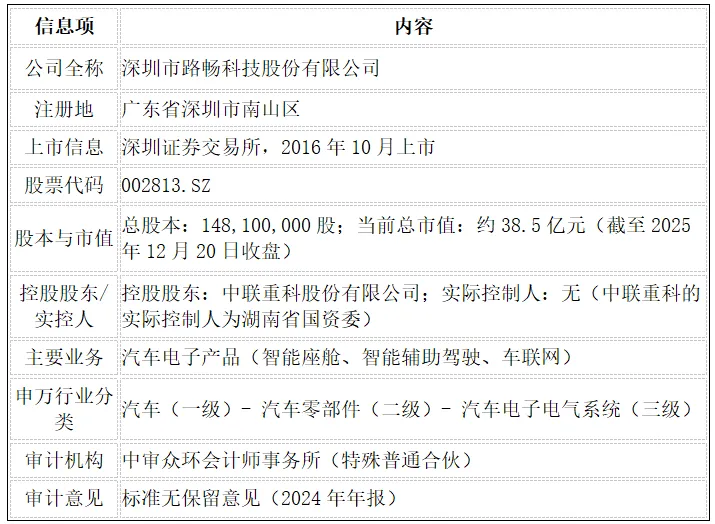 深圳市路畅科技股份有限公司(股票代码:002813)成立于2005年,是中国最早一批专注于车载导航信息系统、车载影音娱乐系统及汽车智能化产品研发、生产、销售与服务的企业之一。
