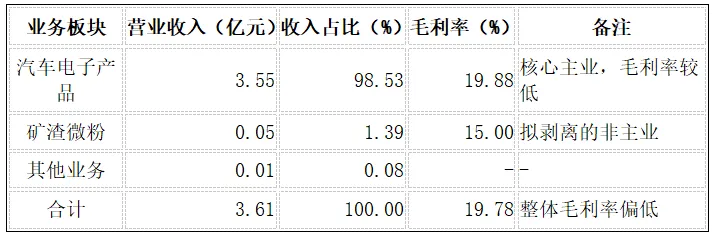 矿渣微粉业务(南阳畅丰)在2024年被确定为非核心业务并拟出售。该业务在公司营收中曾占据一定比例,但由于其周期性强、盈利不稳定且与汽车电子主业缺乏协同效应,剥离是公司优化资产结构、聚焦主业的必然选择。