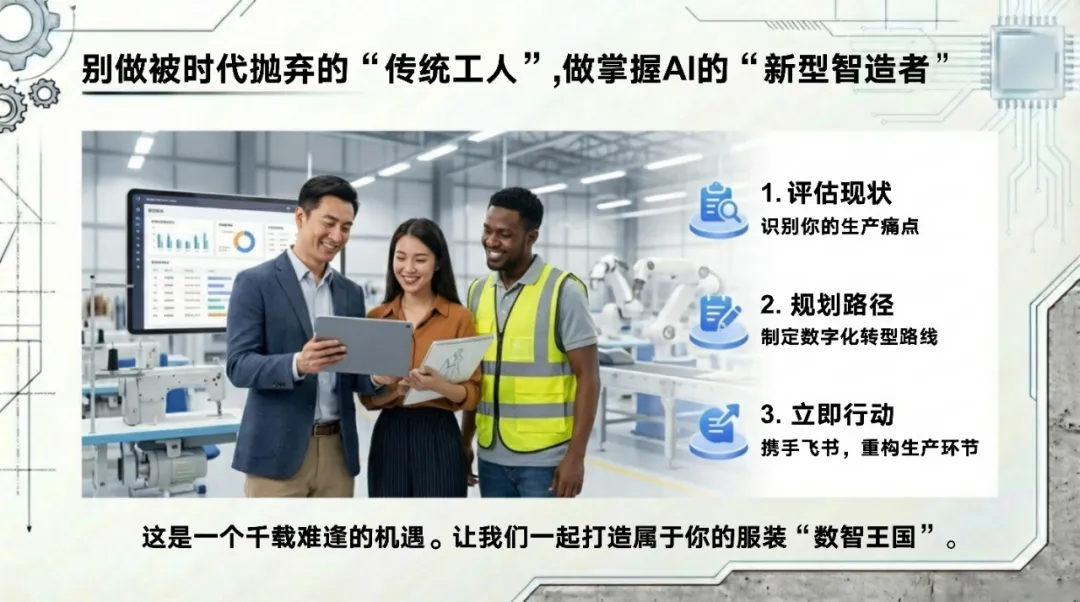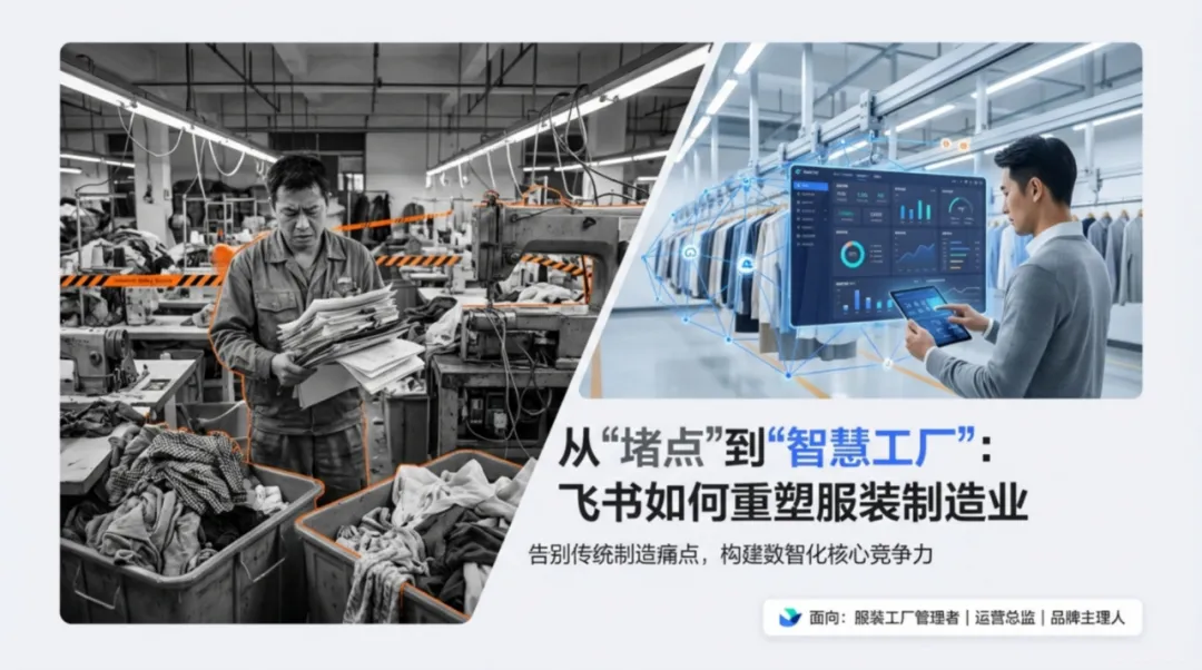 携手飞书,让老厂焕发新生,打造属于你们自己的服装“数智王国”——这是一次千载难逢的机遇,也是实实在在的行业升级。