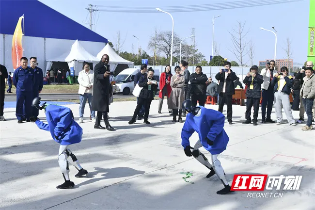 博览会现场的机器人跳舞表演。
