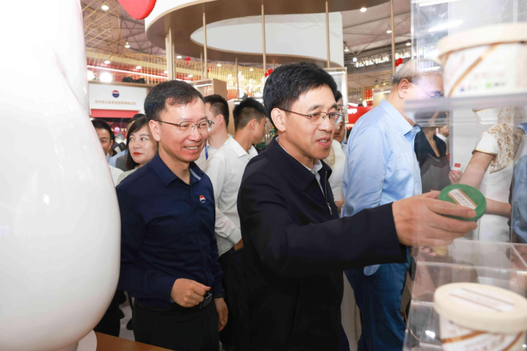 开幕式后,李静仁率队开展巡馆,详细了解茅台家族产品布展情况。