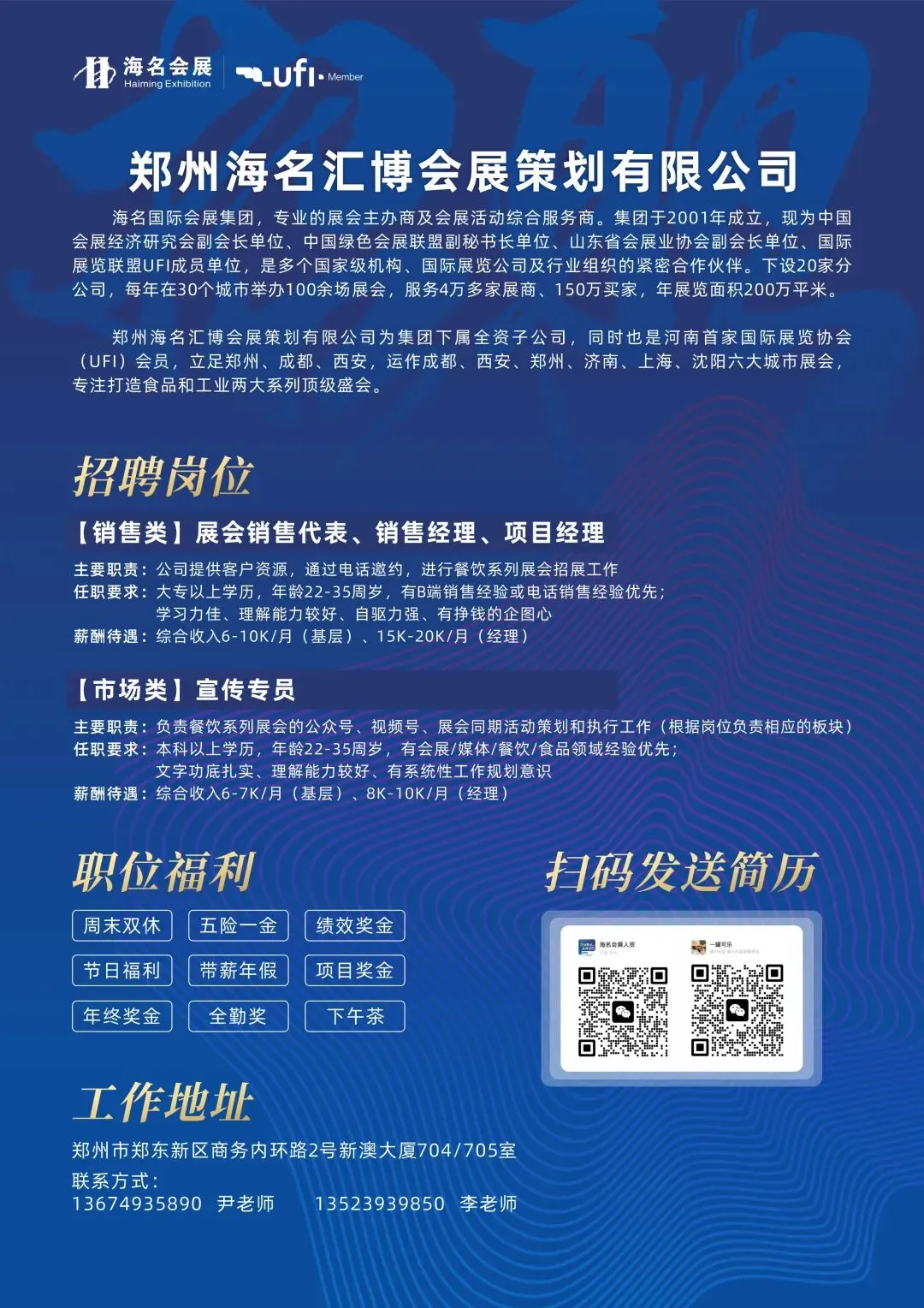 (注:岗位详情可咨询HR,欢迎有会展项目全流程操盘经验者投递,薪资面议,待遇从优)。
