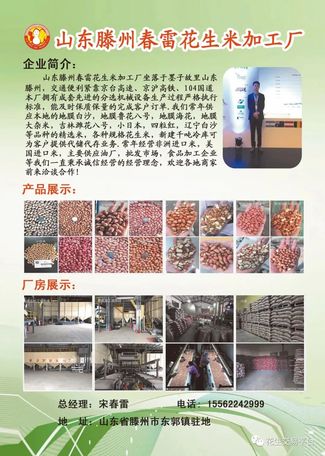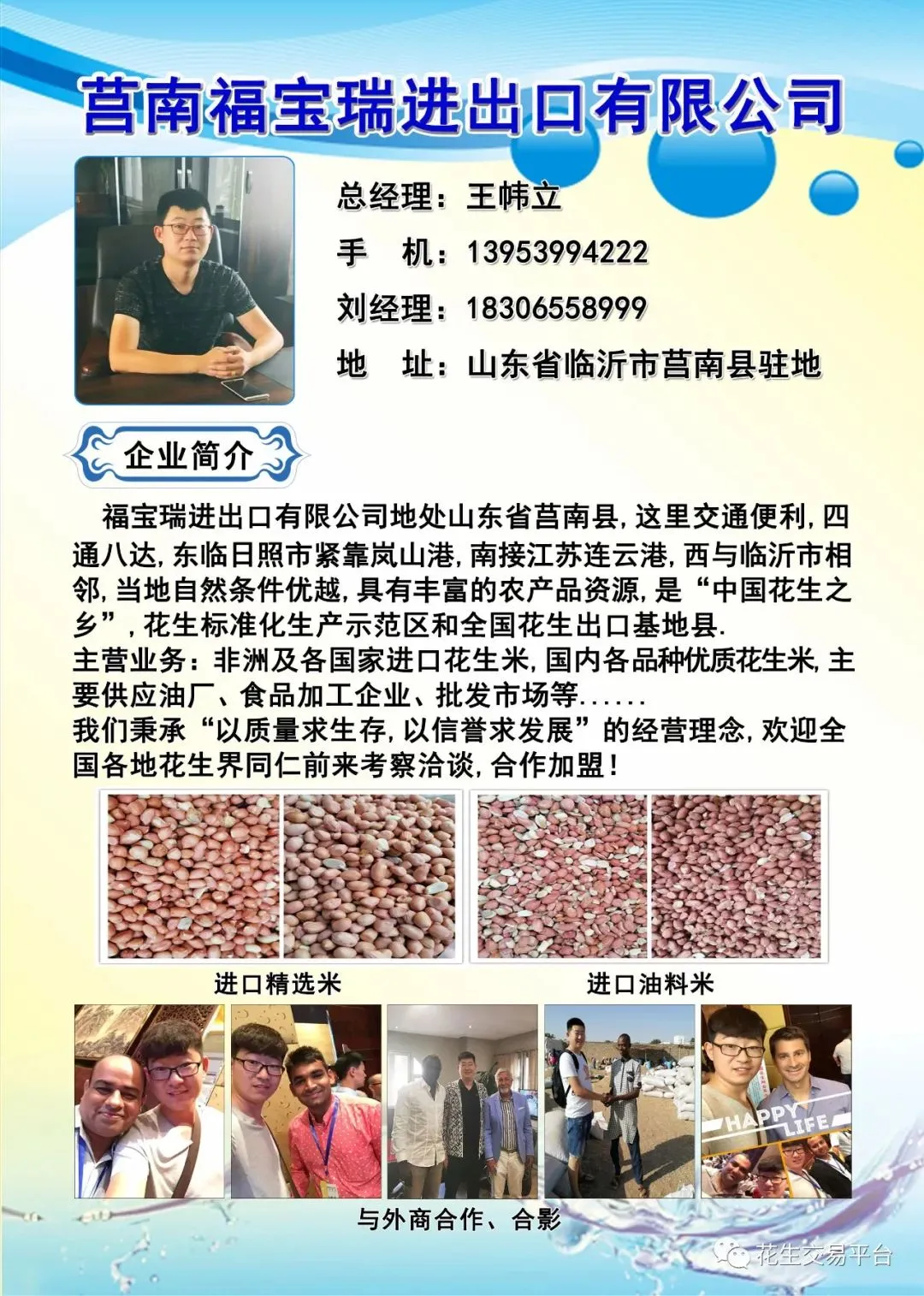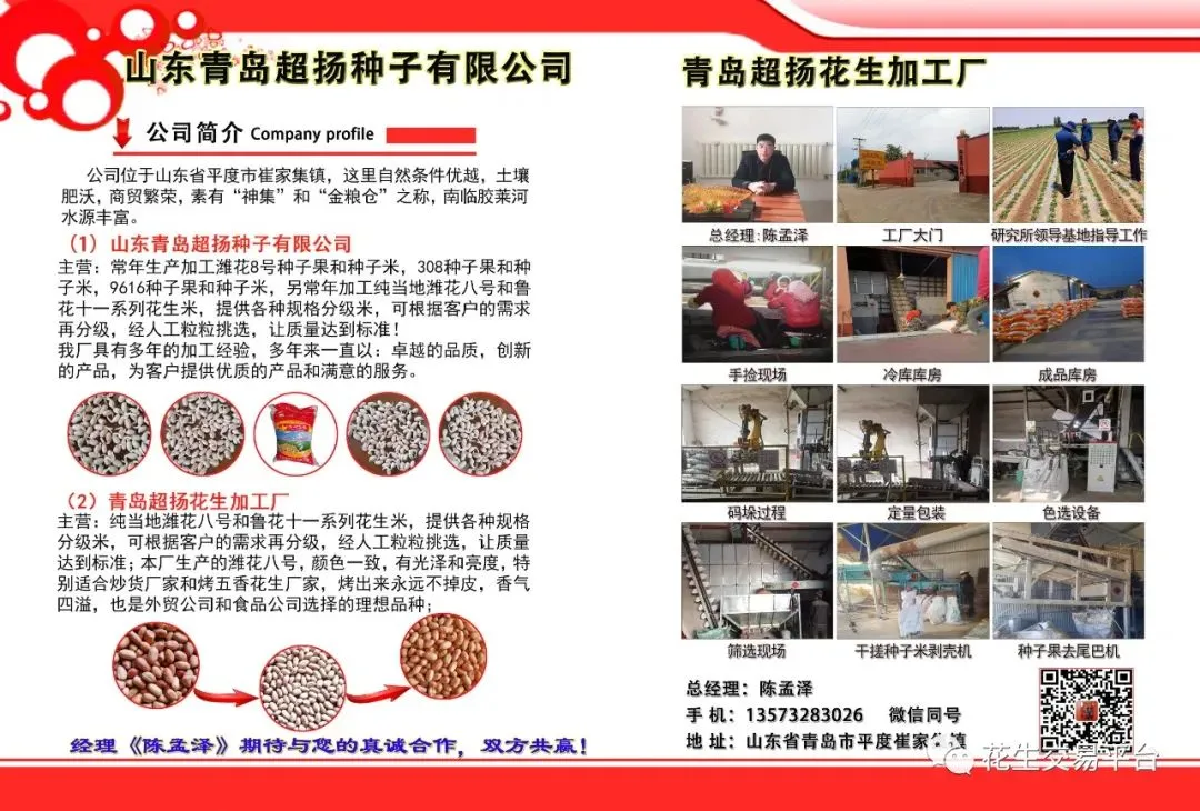 办理彩页版-我们将赠送高级会员服务一年(价值400元),包括:查看各地区花生价格,油厂动态,市场销售情况,进口米价格,期货等等信息服务,并在网站+小程序+微信朋友圈+公众平台帮您发布花生买、卖信息,优先对接客户,建立企业展厅,独立网页链接,诚信供货商等全网宣传、推广。