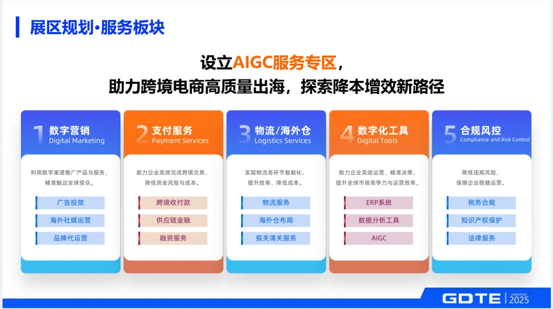 服务板块:聚焦出海服务,打造五大AI赋能体系(数字营销、数字金融、智慧物流、人才培训、合规风控等数字化工具),展现数字技术在客户服务、供应链优化等场景的深度应用。