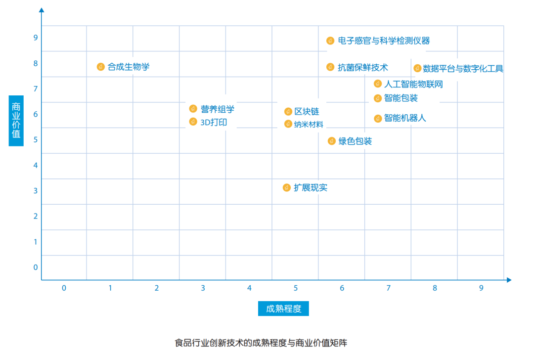 “白皮书”结合安全、健康、绿色和智能等四大行业发展趋势,立足新一代IT技术、先进制造、现代生物学、前沿化学和新材料学,首次从成熟程度、应用场景和商业价值等实用维度,紧扣行业痛点和挑战,全面、系统、综合梳理了当前主流、前沿的13大食品行业创新科技,以及可应用于食品产业链的9大场景,并筛选和梳理了22家典型企业进行重点介绍,为食品企业开展创新场景探索、尝试与落地提供了切实可行的指南,对食品企业创新实践具有相当高的实用价值。