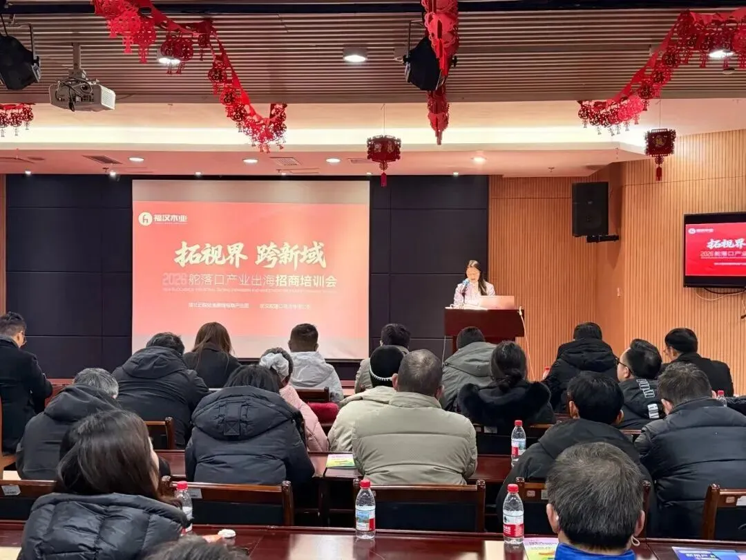 1月22日,福汉木业旗下湖北云联陆港跨境电商产业园,联合服投集团陆港建设公司、舵落口物流公司,在舵落口大市场举办“拓视界,跨新域”产业出海招商培训会。本次活动邀请阿里巴巴国际站、欧洲Voghion唯今国际、遥望科技资深实战专家到场,分享跨境B2B、跨境B2C、TikTok跨境直播的相关知识,邀请了十余家跨境服务商解答出海相关问题,吸引市场100多户商家参加。作为本次活动的协办单位,福瑞德会展(武汉)有限公司业务团队在会议现场与众多企业进行了深入交流,并就2026武汉整装定制家居展进行了重点宣传。
