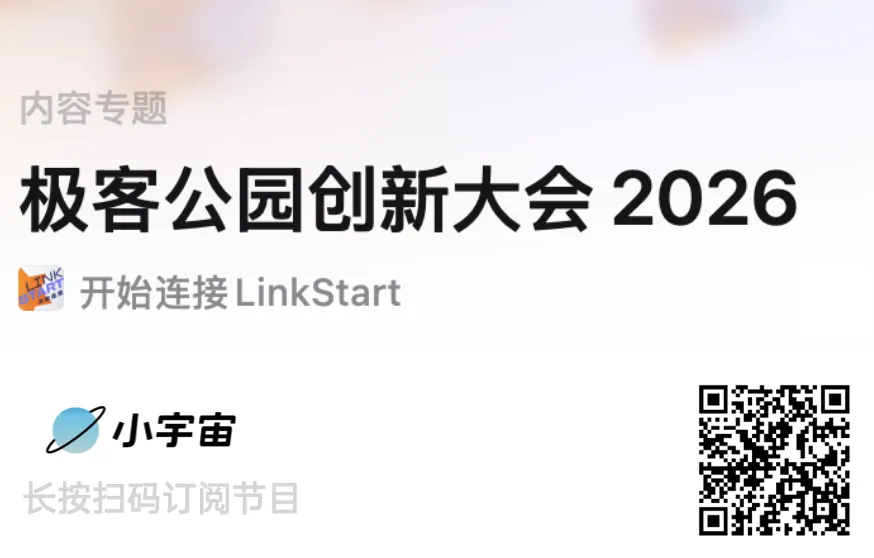 ?极客公园创新大会 2026 精华版访谈已全部上线!错过舞台不要紧,长按下方「卡片二维码」即可收听全部内容~欢迎关注我们的播客「开始连接LinkStart」(小宇宙 App),一起用科技、商业和人文的视角描摹这个时代。