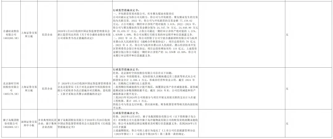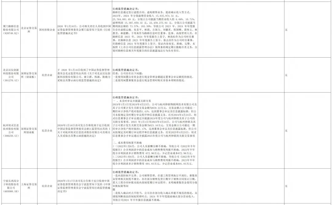 一、本期收到《行政监管措施决定书》的上市公司名单