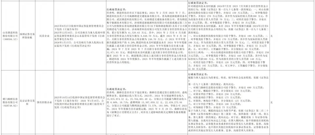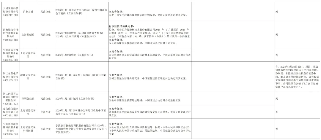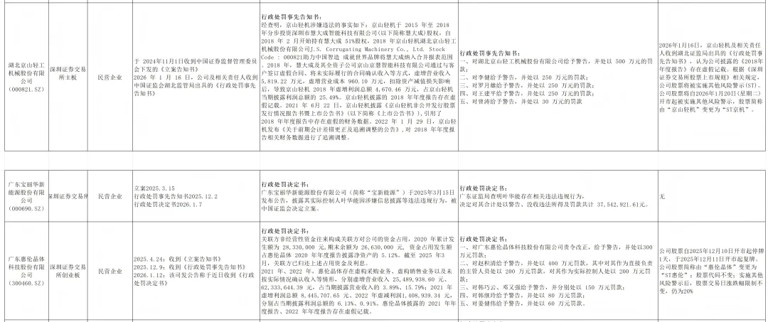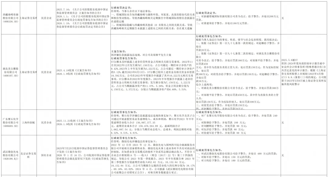三、本期收到《行政处罚事先告知书》的上市公司名单