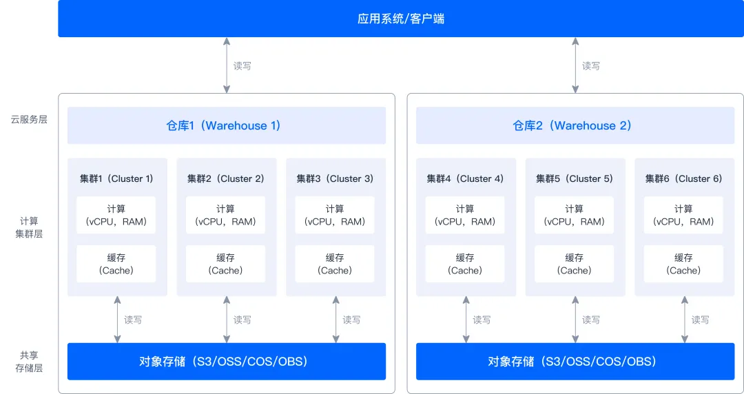 多集群硬隔离与数据共享:支持云原生多集群硬隔离能力,用户可以将单个实例的计算资源划分为多个逻辑集群,不同集群之间的分配独立的计算资源,实现了不同集群的严格物理资源隔离和数据共享。