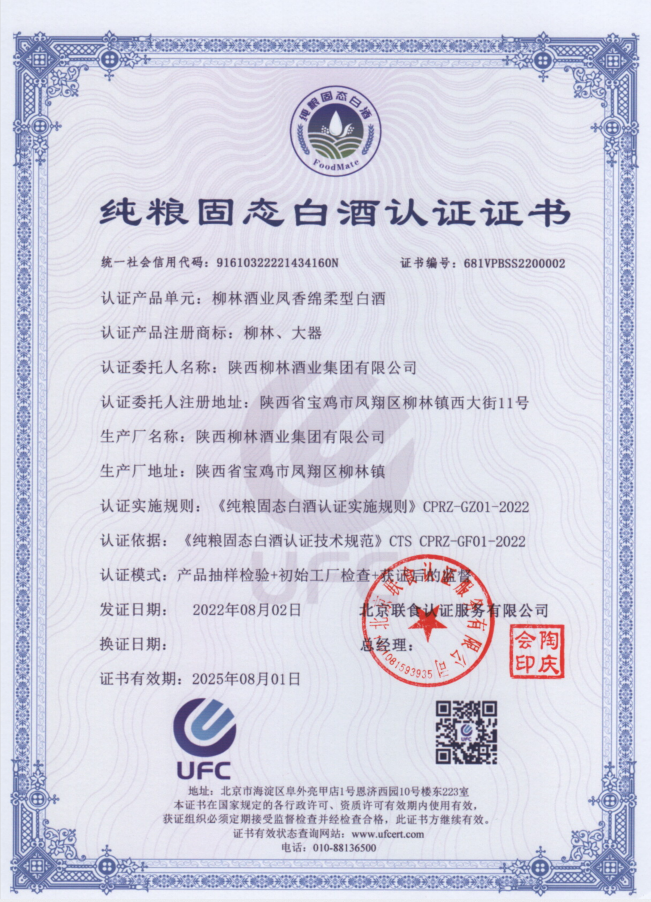 柳林酒在品牌发展的过程中,既坚持纯粮固态传统酿造,保持凤香纯正风味;又创新工艺技术和酒体设计、优化酒体品质,推行“13310”法则,凭借优异的品质打造“大器凤香”品类新标杆,不断提升柳林酒的品类价值。2022年8月,陕西柳林酒业集团获得全国首张“纯粮固态白酒认证”证书,用实力与底气擦亮“陕西名片”。毫无疑问,柳林酒能够获得源自权威机构的品质认证,其产品的信誉与品牌影响力远超其他同类产品,是其在白酒行业竞争中保持独一无二的优势关键。