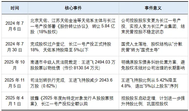 本次股权变动历经“控股权变更-原股东风险出清-控股巩固-股本优化”四阶段,核心时间线与国资审批、司法程序、资本市场操作深度绑定: